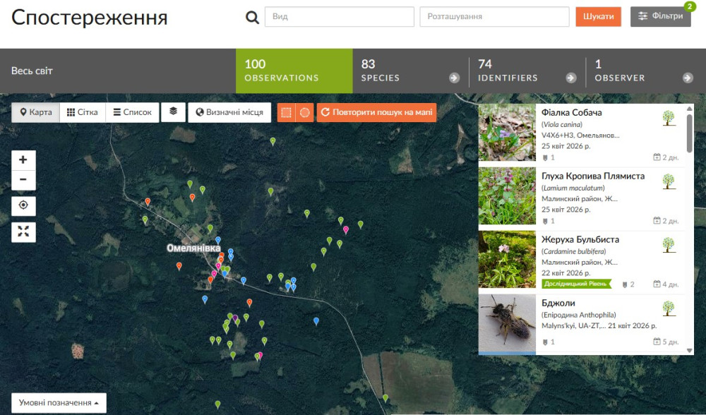 - Загальна кількість спостережень в iNaturalist: 100+ (база даних постійно наповнюється).